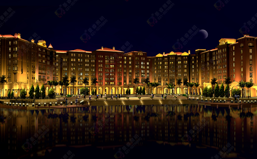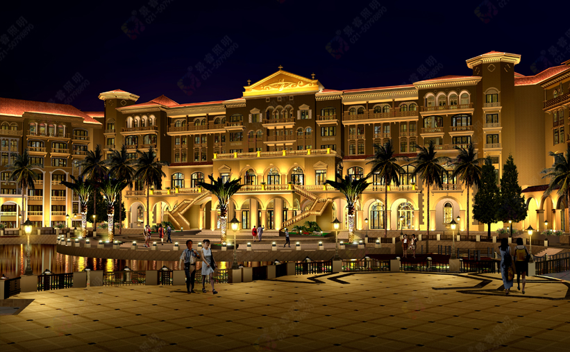 九龍山度假村建筑采用意大利威尼斯建筑風格,九龍山度假村燈光照明設計范圍包括九龍山度假酒店、圣馬可廣場及公寓樓、商業街、婚禮教堂、山頂鐘樓、環境景觀照明、駁岸照明等。