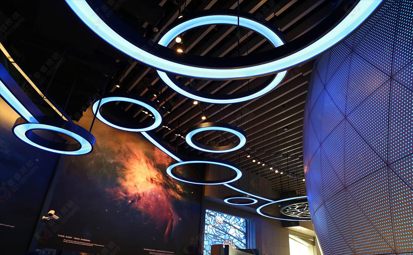 自然館與照明工程相關(guān)的生態(tài)主要是被稱為“細(xì)胞”的外墻。細(xì)胞是和自然生命息息相關(guān)的,而建筑立面采用細(xì)胞來模擬更能反映建筑本身的寓意。分析自然館細(xì)胞墻由遮陽板線、細(xì)胞墻鋼構(gòu)線、幕墻硅膠線三層材料組成。采用內(nèi)光外透,用LED照明投射燈在各層幕墻頂部燈箱作為補(bǔ)充,可以增強(qiáng)立體感,還能借調(diào)室溫。而室外下沉式廣場結(jié)合景觀采用大功率投光燈,通過上海自然博物館對LED照明燈具的大量應(yīng)用,體現(xiàn)出綠色節(jié)能、智能照明控制逐漸成為城市不可分割的一部分。智能控制技術(shù)的迅猛發(fā)展,在滿足人們視覺、生理和心理需求的同時,在“以人為本”的健康照明方面也扮演著越來越重要的角色,人性化和個性化的照明功能正在逐步引領(lǐng)LED照明市場的潮流。