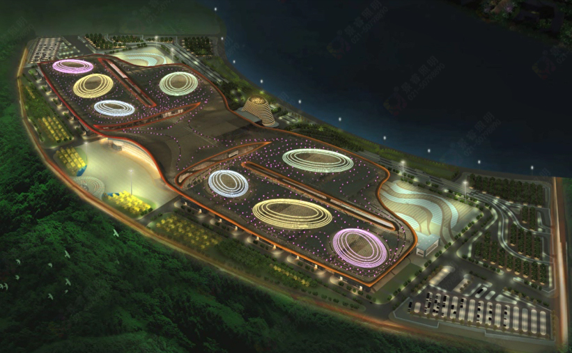 景睿照明在接到該亮化工程項目時,充分調研了該項目整體情況——本項目沿嘉陵江流向呈北東南西帶狀展開,屬丘陵斜坡場地,集展覽場館、會議中心及會展酒店于一體,總占地面積1.3平方公里,總建筑面積60.2萬平米,展館建筑面積約43萬平米,全部為平層無柱式展館,地面承重3-5噸。國博中心,這一座巨大的藍底建筑,從空中鳥瞰,外觀就像一只巨型的蝴蝶。蝴蝶形狀的屋頂采用鋁格柵鏤空屋面施工工藝,錯落有致,“身軀”為多功能廳,兩只“翅膀”為展廳分布。