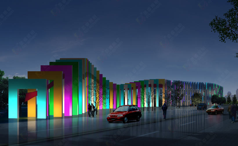 藝術性原則:運用燈光設計藝術手法中的點線面的設計要素,結合分段照明,高科技聲光電照明手法來創(chuàng)造出主題鮮明,整體和諧,風格新穎的照明夜景。