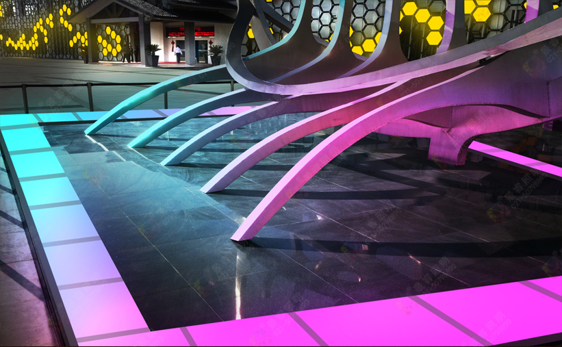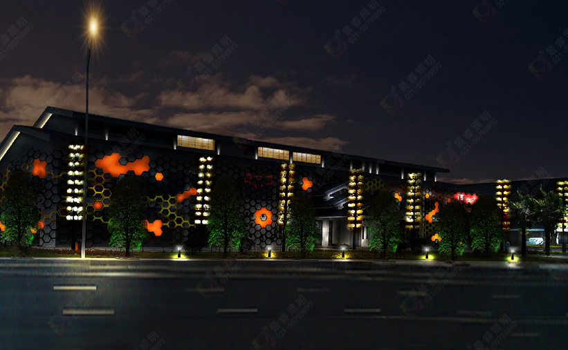景睿照明在對該項目做燈光設計時,以整體燈光工程為出發點,將服務樓及辦公樓立面蜂巢結構采用LED點光源及LED柔性燈,DMX512控制彩色動態變化,體現出現代時尚創意無限意愿。