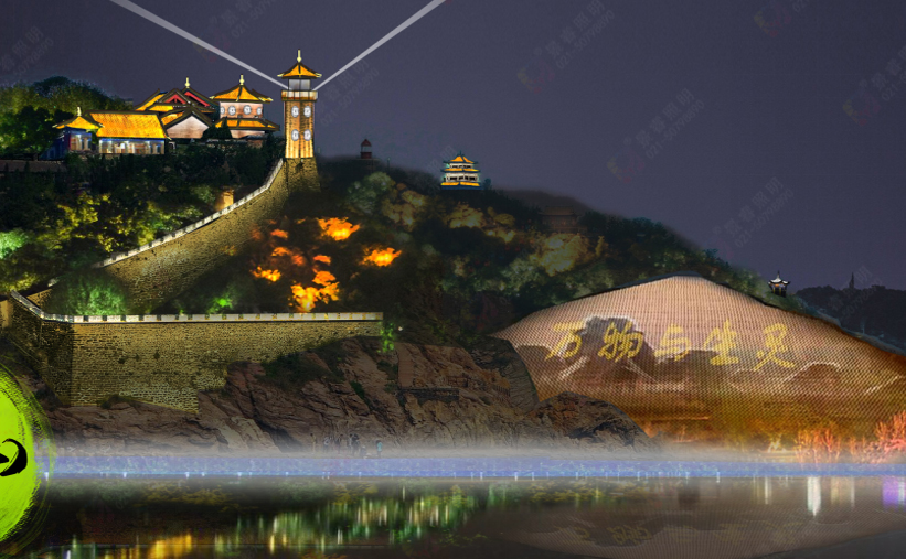 針對蓬萊濱海眾多的旅游資源及其得天獨厚的山水格局自然風貌,上海景睿照明工程有限公司在燈光設計時因地制宜,將生境、畫境和意境高度統一,營造出極符審美情趣、精神追求,符合城市功能生長性持續發展,符合人與自然泛在性和諧人居的天人合一概念下的光影藝術氛圍。同時照明設計以夢幻浪漫的海洋多元文化為主題,以點帶面的集合,虛實聯動,打造宜居和諧的濱海旅游景觀空間。層次多樣的照明設計表現手法展現多元的互動景觀及光影藝術效果。結合數字多媒體技術(3D投影)及激光音效,多層次,交互的,全面提升蓬萊海濱區的光影藝術展示系統,打造歷史文化底蘊深厚、生態良好生產發展,宜居和諧的濱海旅游景觀空間。通過現代多媒體技術,將生境、畫境和意境高度統一,通過富有神話傳奇色彩的八仙過海,各顯神通的中國民間傳說,呈現光影蓬萊,人間仙境,概念演繹下的光影藝術。