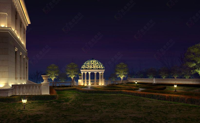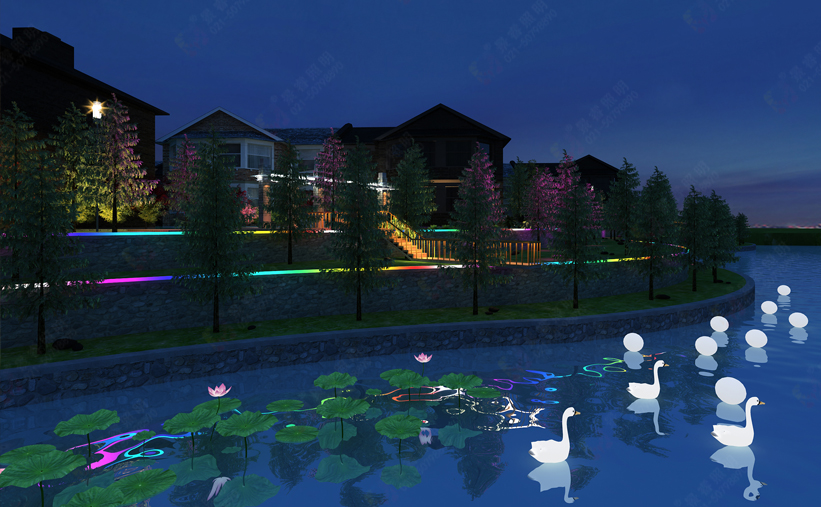 姑蘇釣魚臺夜景燈光照明項目分三個部分:河岸碼頭、園林景觀、建筑。河岸使用湖藍光洗墻燈下照,欄桿柱為白光LED投光燈照射;碼頭扶欄使用白光洗墻燈照射,間隔安裝湖藍光LED投光燈下照水面,二者產生對比,凸顯結構。園林綠化采用黃、白光LED投光燈照射,利用綠化本身色彩表現;亭分別使用投光燈、洗墻燈、壁燈處理柱、亭頂,因地制宜,充分利用園亭本身結構來體現光的變化。建筑采用3000K投光燈照射柱體,利用余光稍微帶亮墻面,墻面不做大面積照明以增加層次感;白光洗墻燈照射欄桿,以和其他結構區分;檐口、屋面、屋頂使用3000K洗墻燈處理突出。夜晚,整個區域燈光在水面形成倒影,明暗變化,是一個亮點。