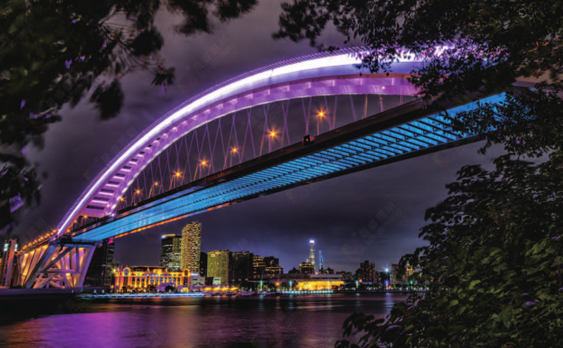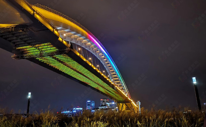 本工程主要是對(duì)橋梁主塔或主拱、拉索、橋側(cè)及橋腹布設(shè)景觀燈,更新景觀照明系統(tǒng)。方案采用明快大氣、動(dòng)靜結(jié)合的手法著重強(qiáng)調(diào)橋梁自身的結(jié)構(gòu)美感和大氣恢弘的氣勢(shì)。在浦江兩岸未來(lái)的夜景照明動(dòng)態(tài)色彩均不缺乏的基礎(chǔ)上,作為局部空間的地標(biāo),燈光平時(shí)以靜態(tài)照明為主(或單色動(dòng)態(tài));節(jié)假日在橋側(cè)可動(dòng)態(tài)滾動(dòng)突出橋梁的水平方向延伸的氣勢(shì),突出橋梁作為地標(biāo)的穩(wěn)重和大氣莊嚴(yán)。