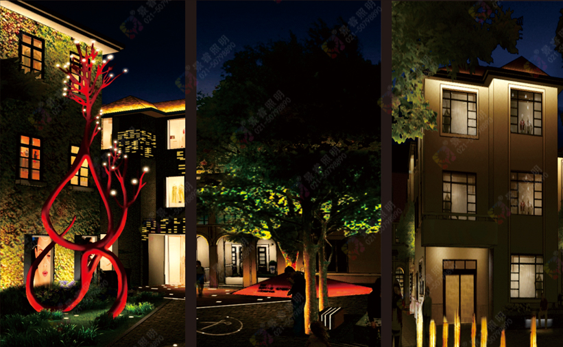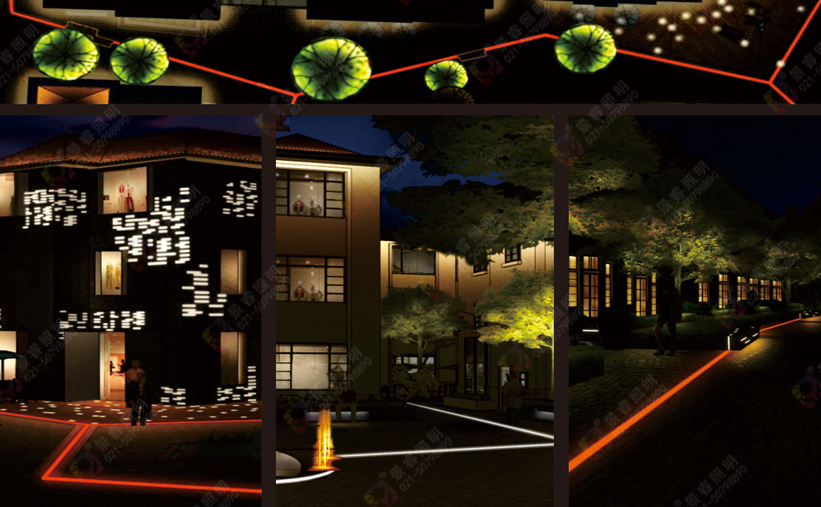 建筑照明分為屋面、立面兩部分,在大范圍的統(tǒng)一中尋求細(xì)節(jié)的變化,達(dá)到燈光于環(huán)境的協(xié)調(diào),體現(xiàn)其所處位置的特色。