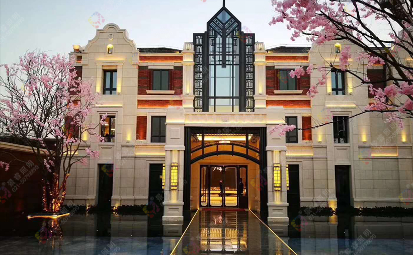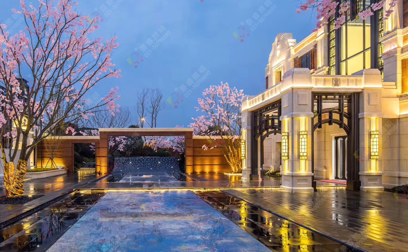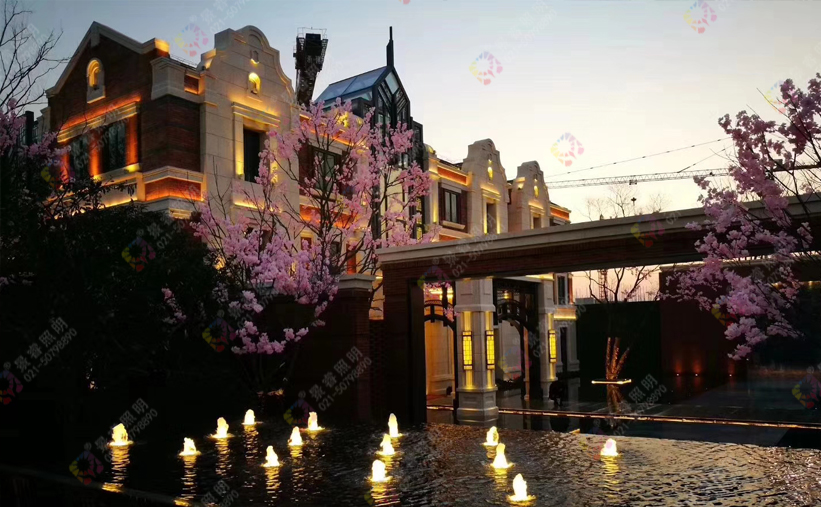 根據(jù)建筑結(jié)構(gòu)及材質(zhì),選用了3000K色溫的LED燈具。為了實(shí)現(xiàn)既有夜晚燈光效果,又不影響白天的建筑外觀,燈具的選擇大小、形狀不一,采用了洗墻燈、投光燈、壁燈、埋地?zé)簟⑶度胪矡舻龋昝赖睾徒ㄖ跒橐惑w,達(dá)到了見光不見燈的效果。